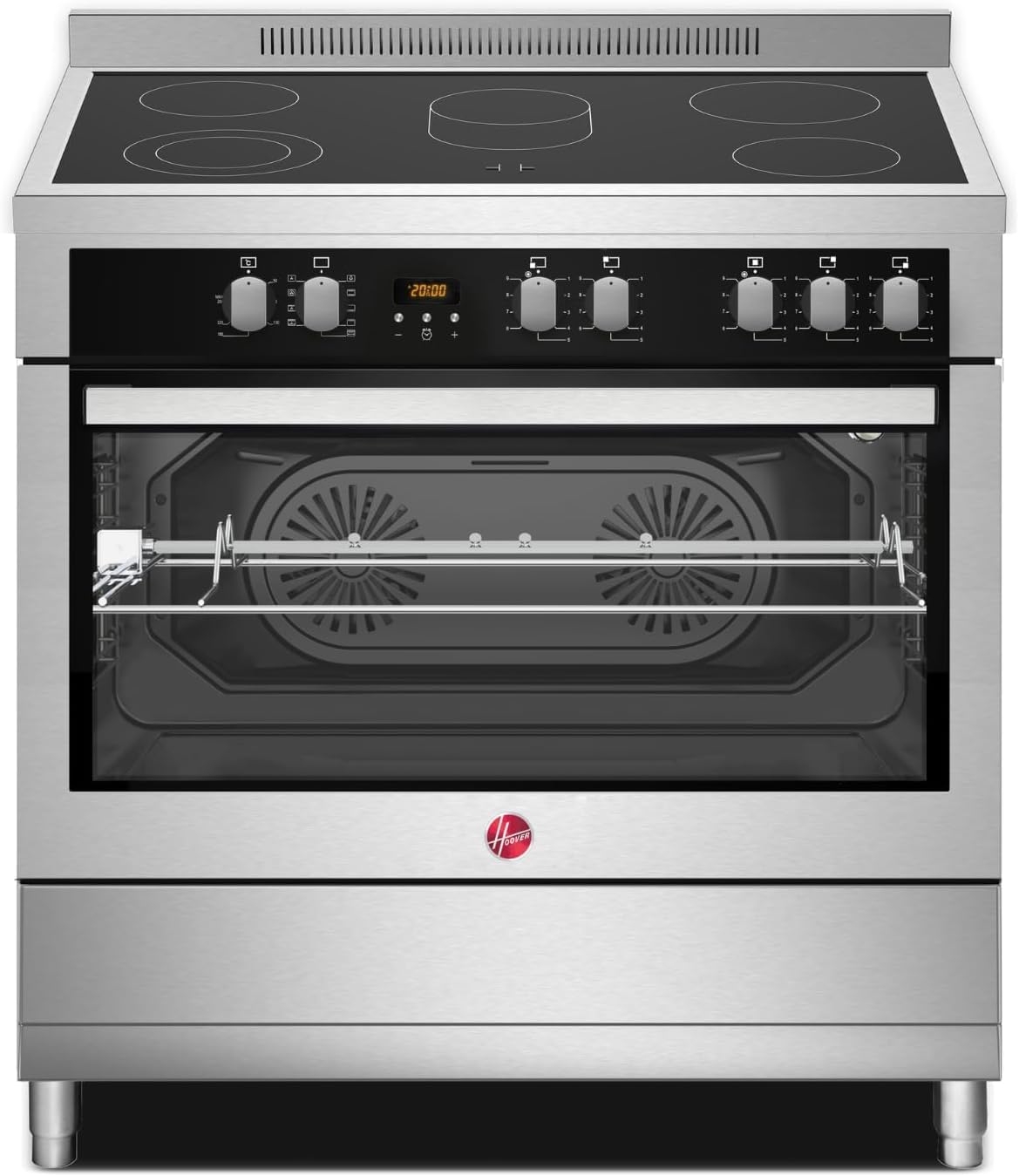 Hoover 90 x 60 cm Ceramic Cooker,Full Electric Cooker 5 Cooking Zone with 2 Convection Fans